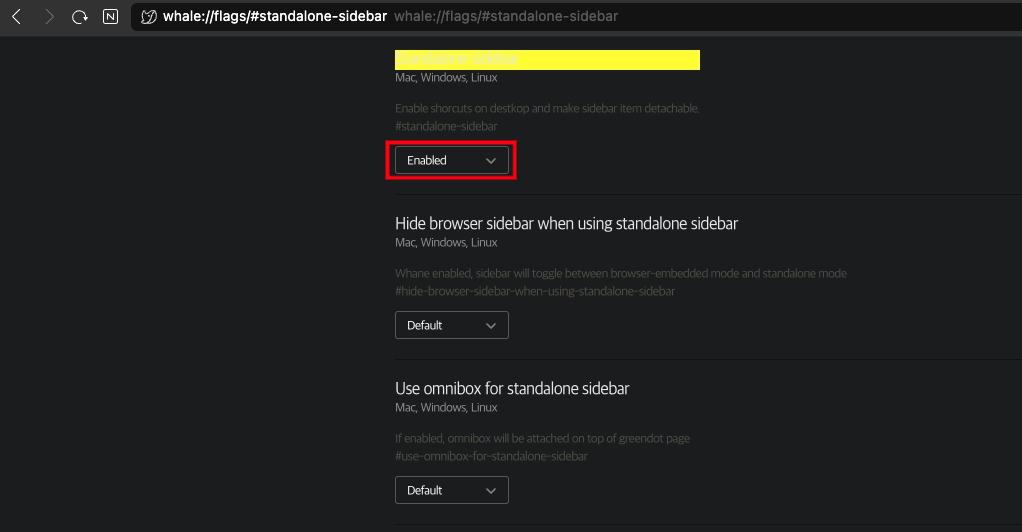 whale://flags/#standalone-sidebar