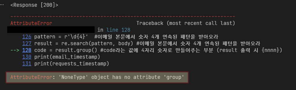 [파이썬] AttributeError: 'NoneType' object has no attribute 'group' 에러 코드 원인, 해결방법