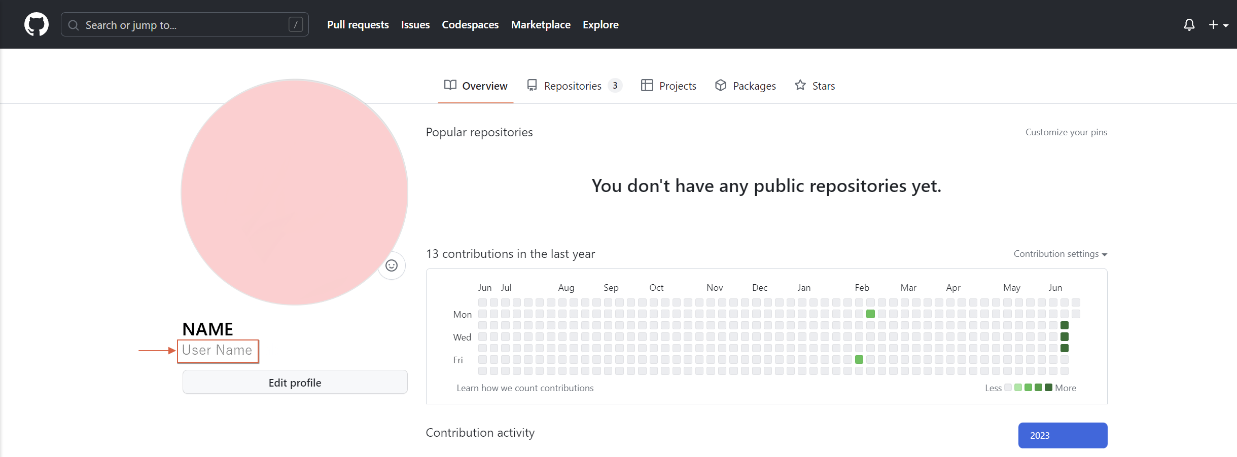 - user name은 본인 계정의 프로필에서 밑에 있는 이름이 User Name이다.