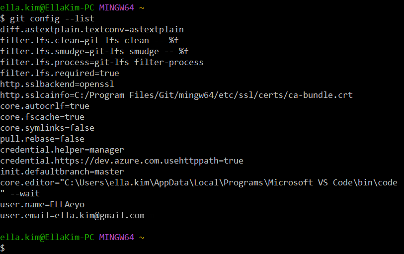 💡 위에 두가지를 모두 입력하면 아무 정보가 뜨지는 않는다. 일단 입력하는 것으로 세팅은 끝이다.